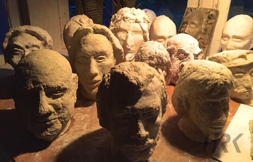 Köpfe, verschiedene Kopfplastiken zum Teil von Freunden,